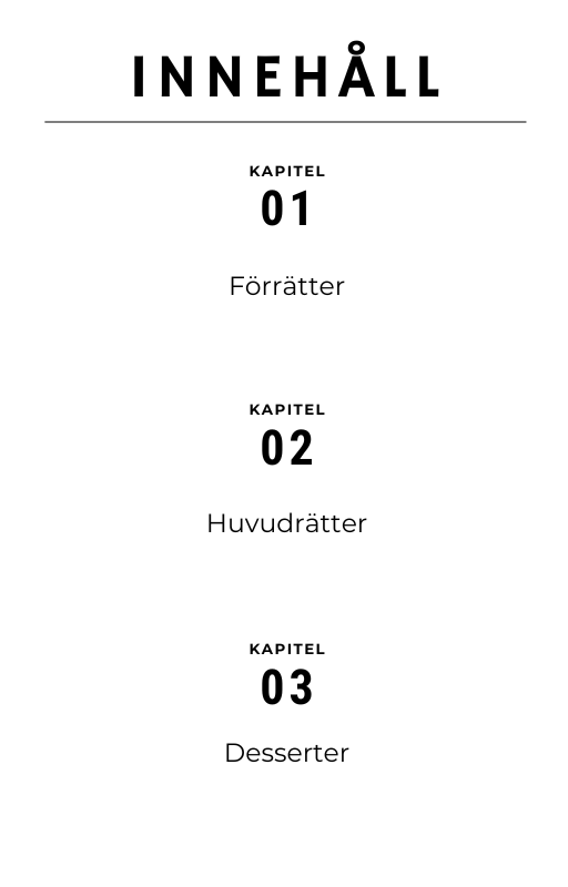 Innehåll - 30 recept med ingredienser, steg-för-steg-beskrivningar och foton